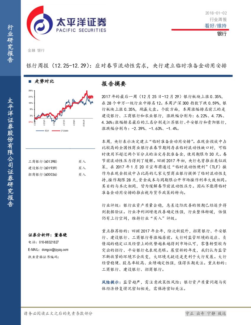 太平洋证券:银行周报:应对春节流动性需求,央行建立临时准备金动用安排.pdf