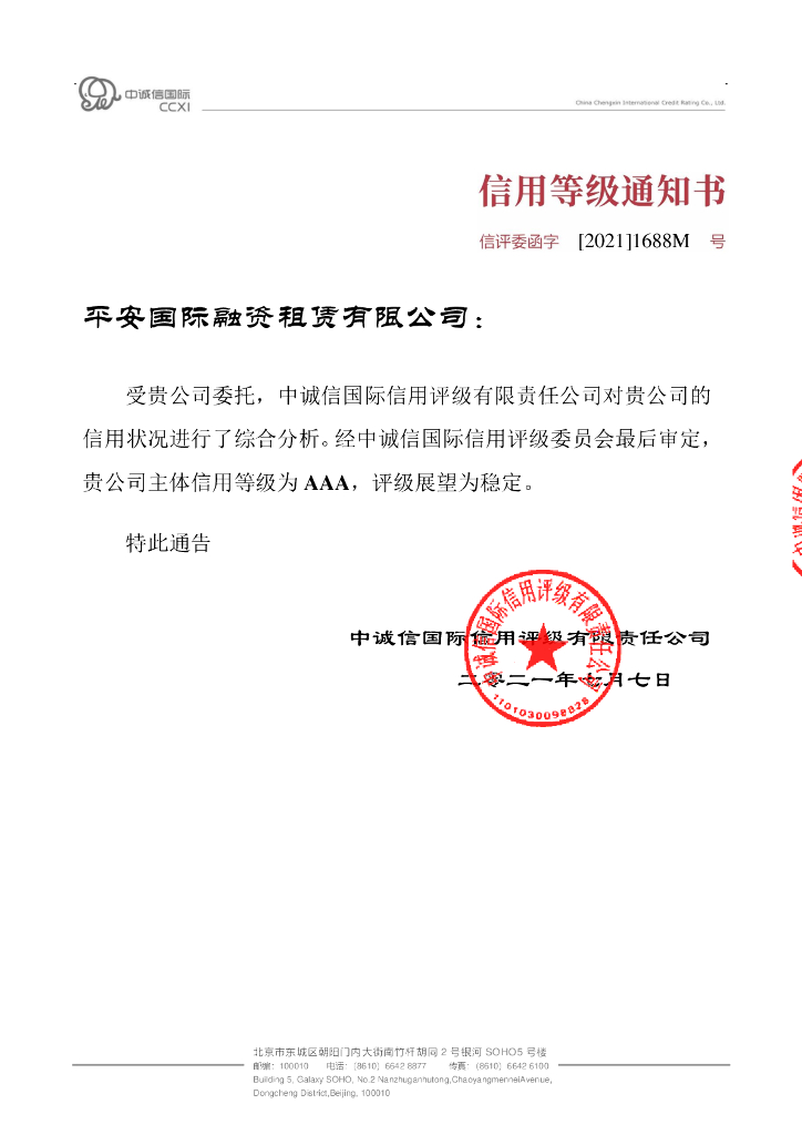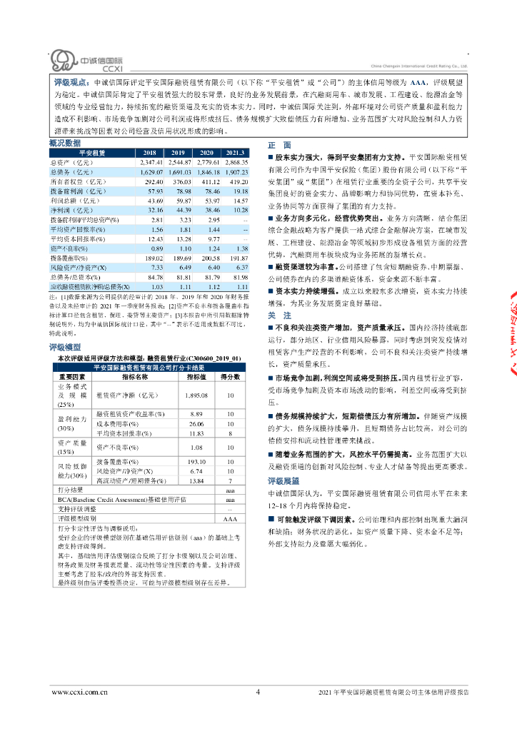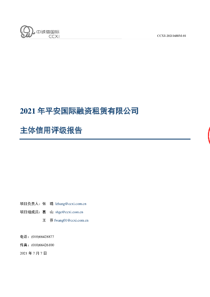 中诚信:平安国际融资租赁有限公司主体信用评级报告 .pdf