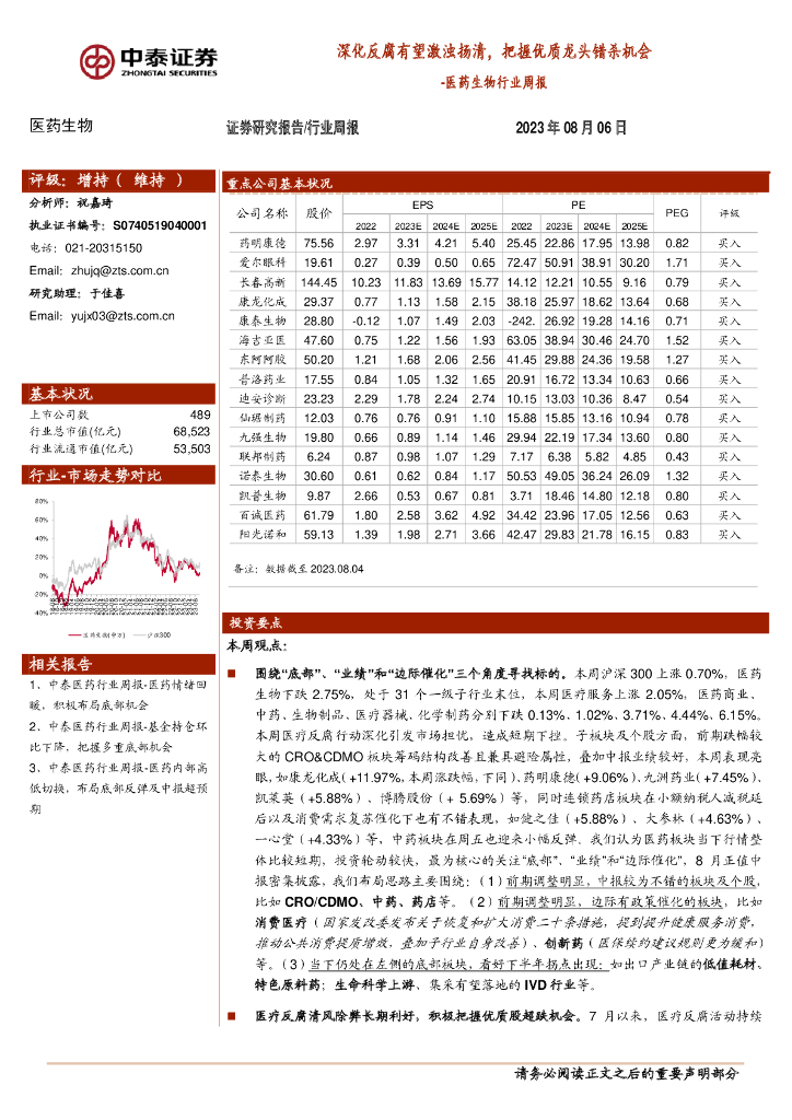 中泰证券:医药生物行业周报:深化反腐有望激浊扬清,把握优质龙头错杀机会.pdf