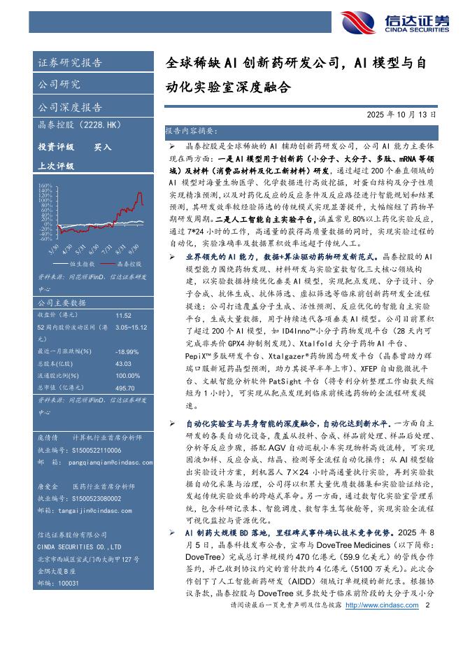 信达证券:晶泰控股(2228.HK)——公司深度报告-全球稀缺AI创新药研发公司,AI模型与自动化实验室深度融合.pdf