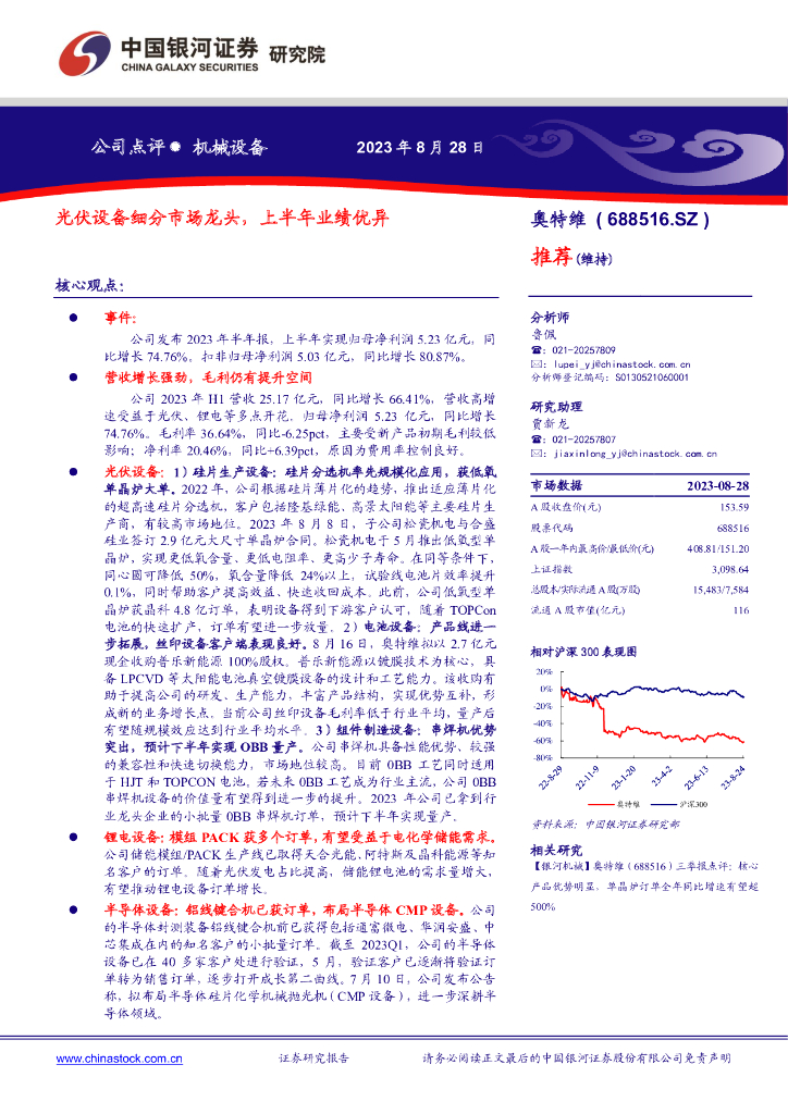 中国银河:奥特维(688516)-光伏设备细分市场龙头,上半年业绩优异.pdf