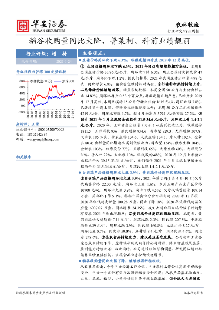 华安证券:农林牧渔行业周报:稻谷收购量同比大降,普莱柯、科前业绩靓丽.pdf