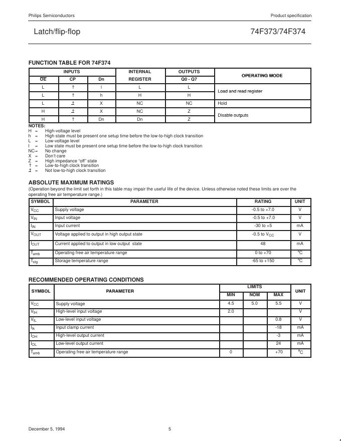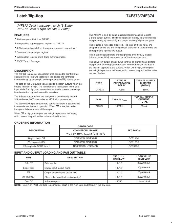 PHILIPS 74F373/74F374 数据手册.pdf