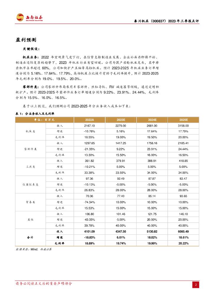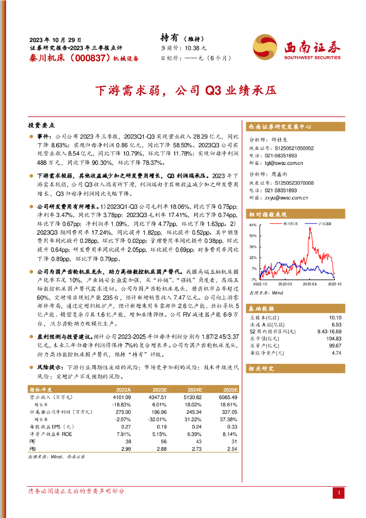 西南证券:秦川机床(000837)-2023年三季报点评:下游需求弱,公司Q3业绩承压.pdf