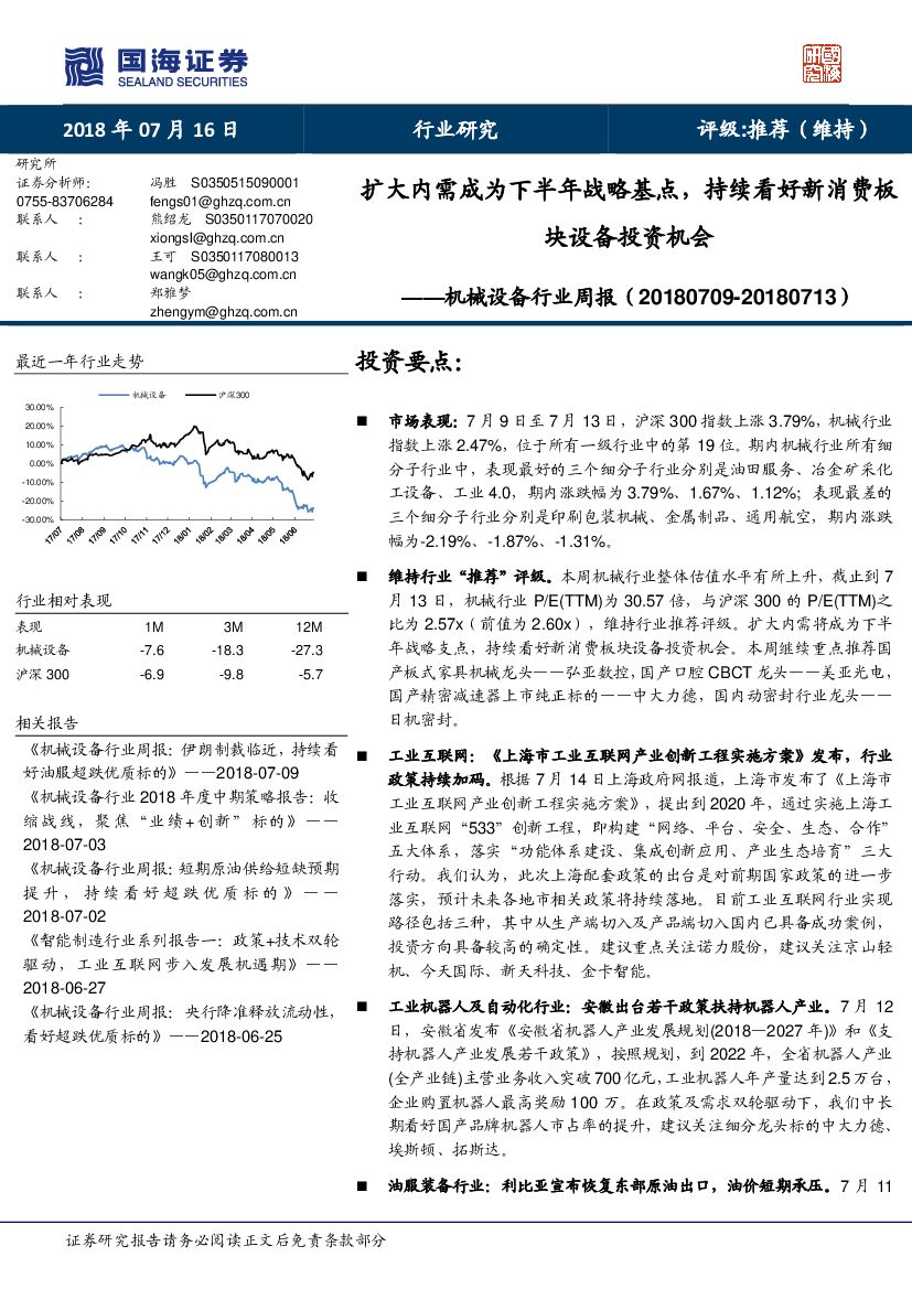 国海证券:机械设备行业周报:扩大内需成为下半年战略基点,持续看好新消费板块设备投资机会.pdf