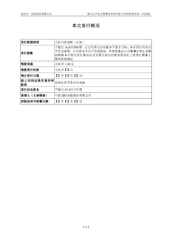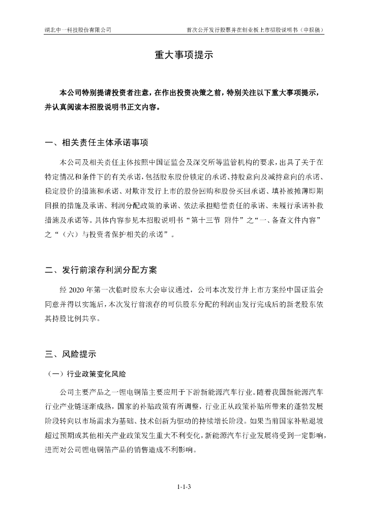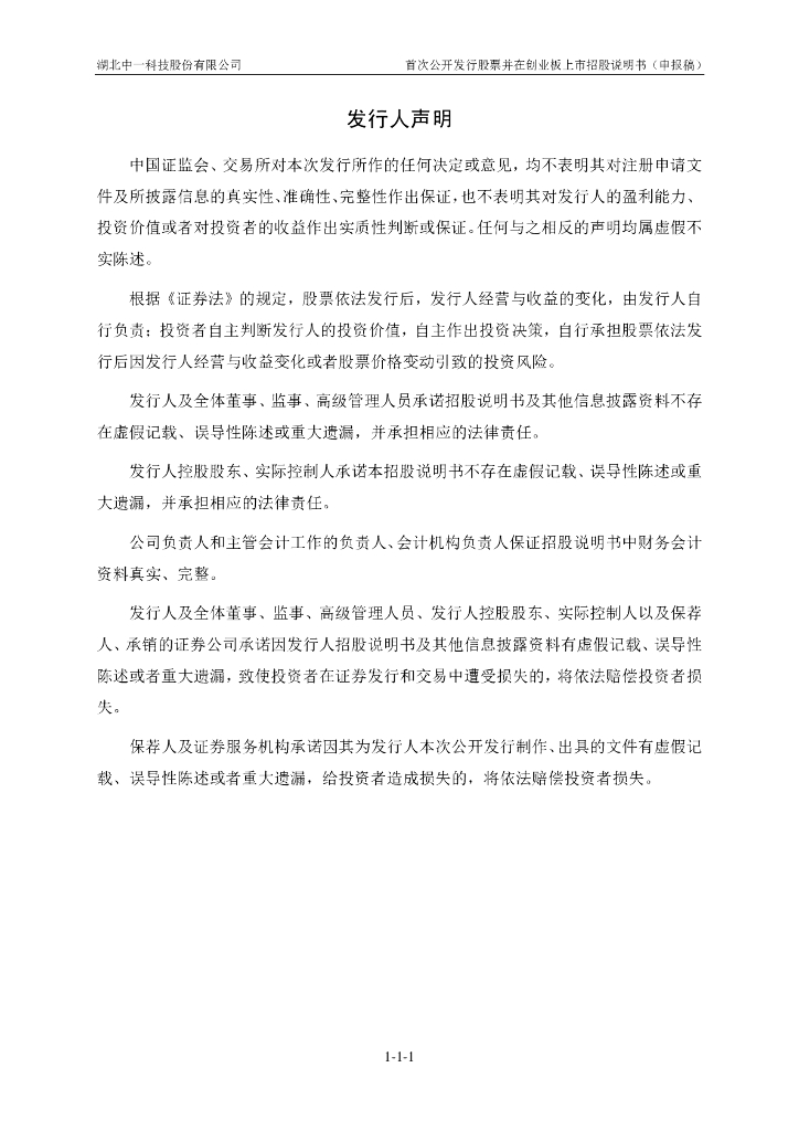湖北中一科技股份有限公司深交所创业板IPO上市招股说明书.pdf
