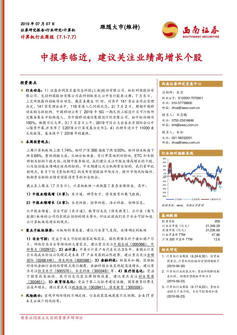 西南证券:计算机行业周报:中报季临近,建议关注业绩高增长个股.pdf