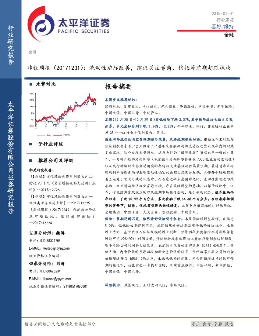 太平洋证券:非银周报:流动性边际改善,建议关注券商、信托等前期超跌板块.pdf