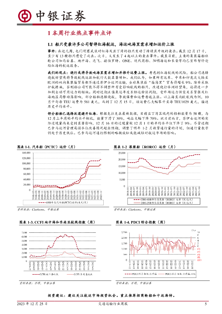 中银证券:交通运输行业周报:红海船只受袭导致吨海里需求与运价上涨,11月航空货运市场表现良好.pdf