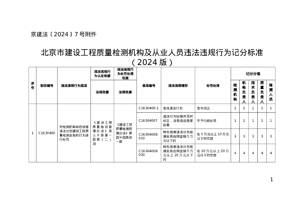北京市建设工程质量检测机构及从业人员违法违规行为记分标准(2024版).doc