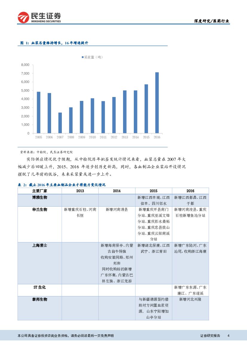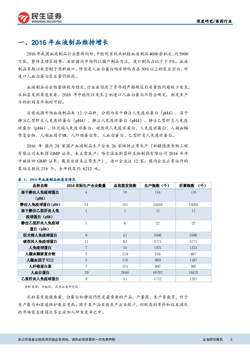 民生证券:医药行业深度报告:血制品上半年产量上升,关注进口影响.pdf