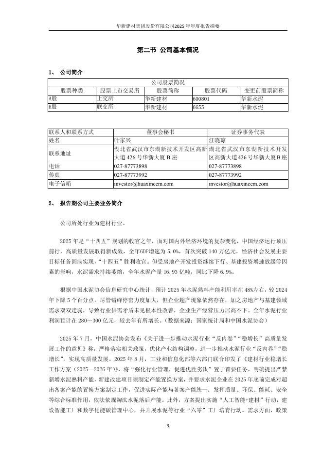 600801-华新建材:2025年年度报告摘要.pdf
