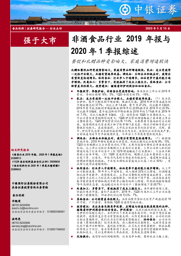 中银证券:非酒食品行业2019年报与2020年1季报综述:餐饮和礼赠品种受影响大,家庭消费增速较快.pdf