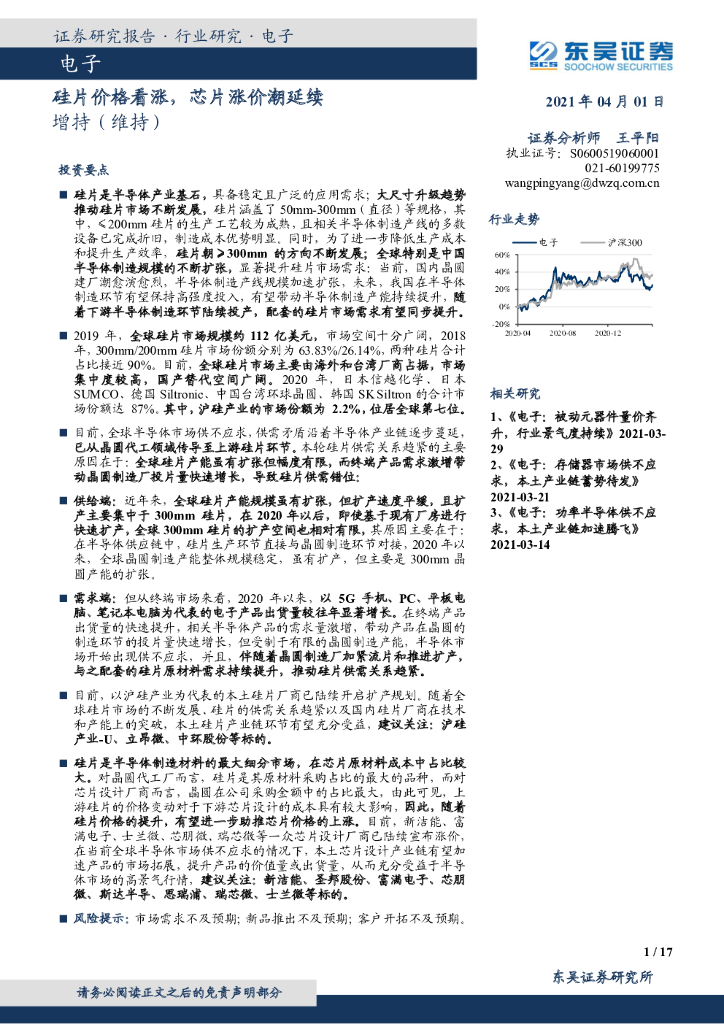 东吴证券:电子:硅片价格看涨,芯片涨价潮延续.pdf