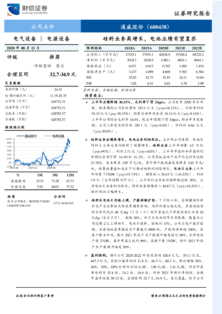 财信证券:通威股份(600438)-硅料业务高增长,电池业绩有望复苏.pdf