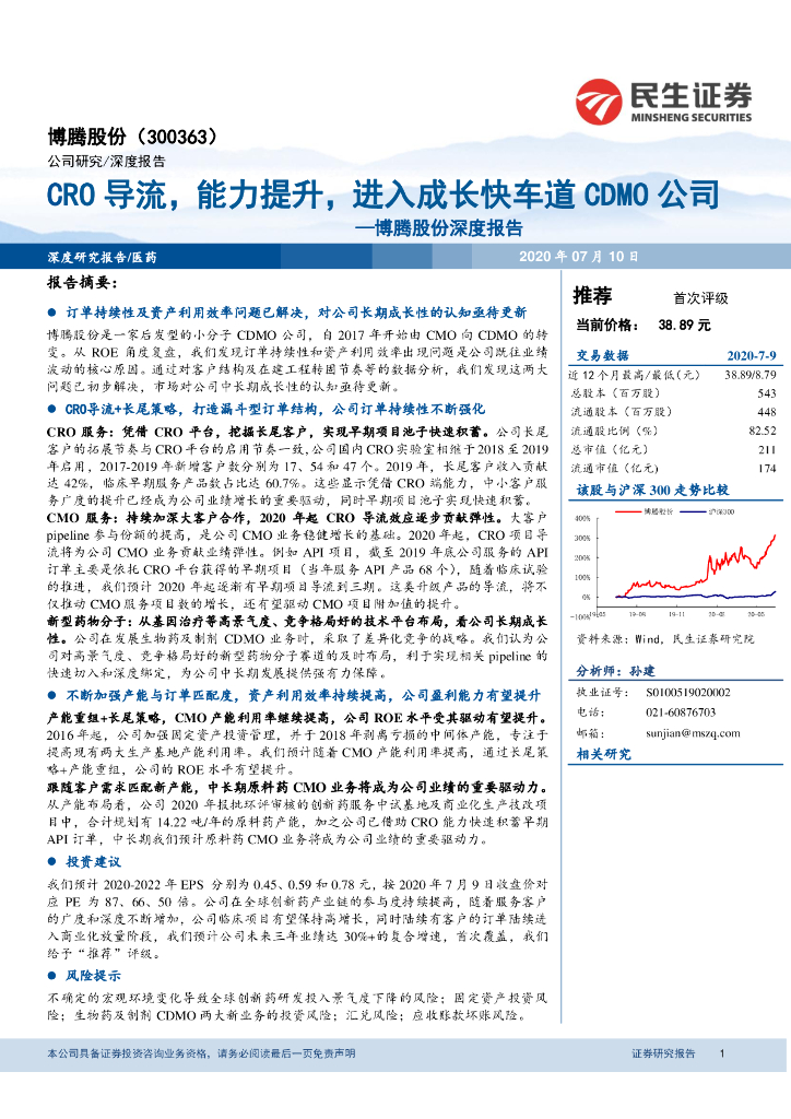 民生证券:博腾股份深度报告:CRO导流,能力提升,进入成长快车道CDMO公司.pdf