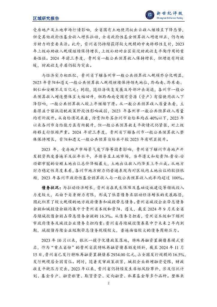 1、打开文档需要使用基本的办公软件,如Word、Office、WPS、Pdf、Cad、Rar、Zip等。 2、如遇下载失败、解压失败、文档缺失等问题,请通过【反馈】按钮提交。新世纪评级:贵州省及下辖各州市经济财政实力与债务研究(2024).pdf