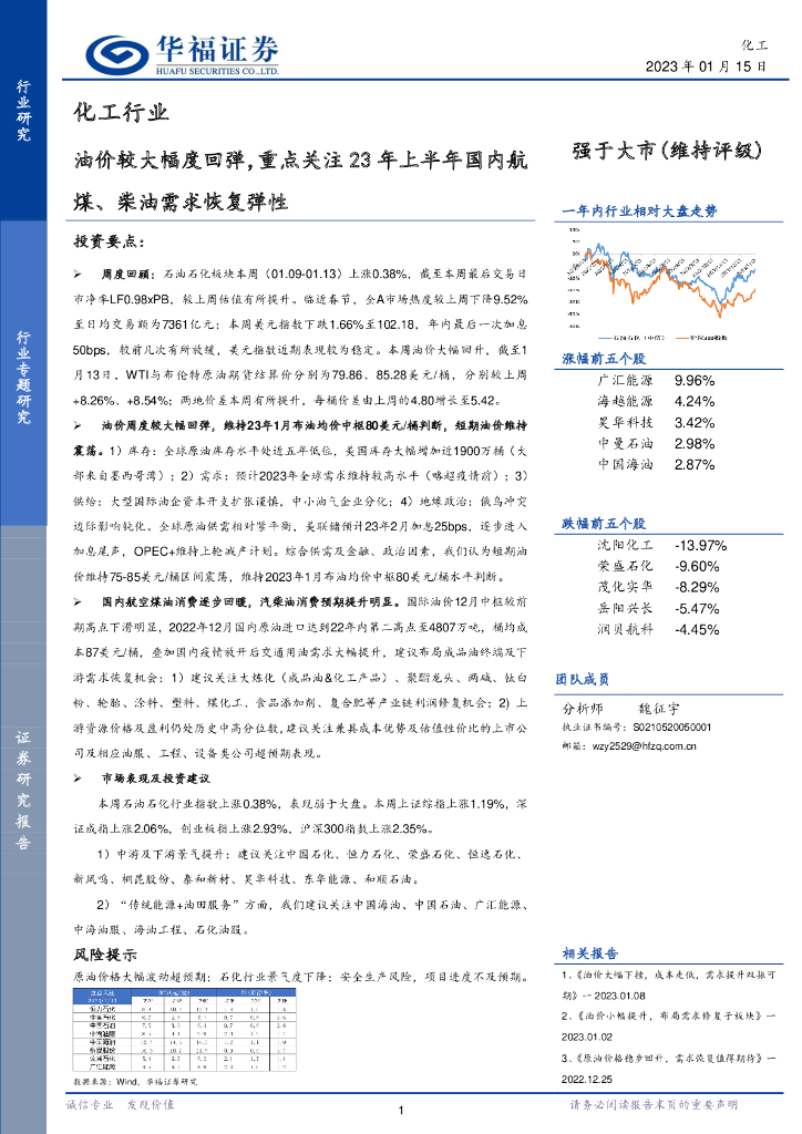 华福证券:化工行业:油价较大幅度回弹,重点关注23年上半年国内航煤、柴油需求恢复弹性.pdf