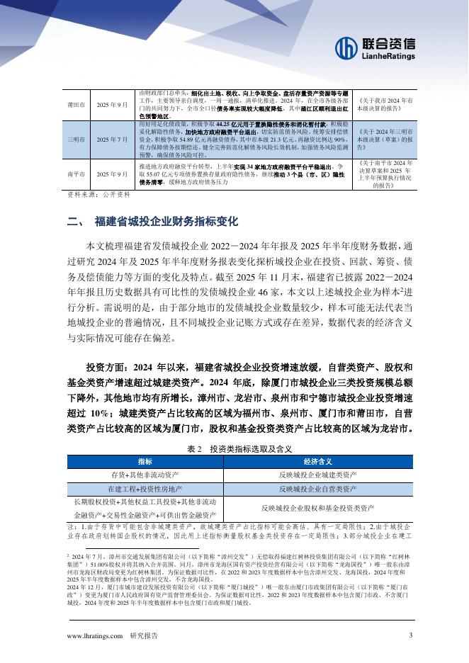 联合资信:2025年投资和债务增速均放缓,多措施助力化债成效显现-福建省发债城投企业财务表现观察报告.pdf