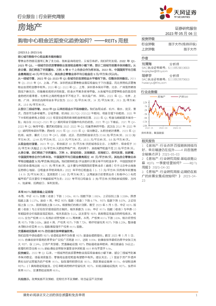 天风证券:房地产REITs周报:购物中心租金近期变化趋势如何?.pdf
