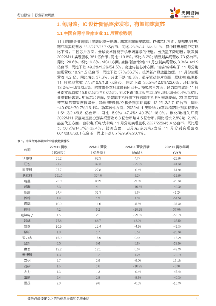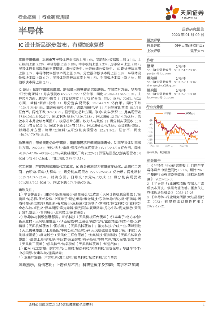 天风证券:半导体行业研究周报:IC设计新品逐步发布,有望加速复苏.pdf