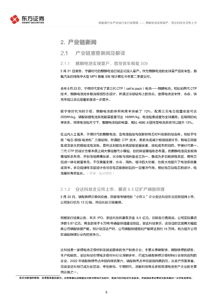 东方证券:新能源汽车产业链行业:麒麟电池实现量产,安达科技北交所上市.pdf