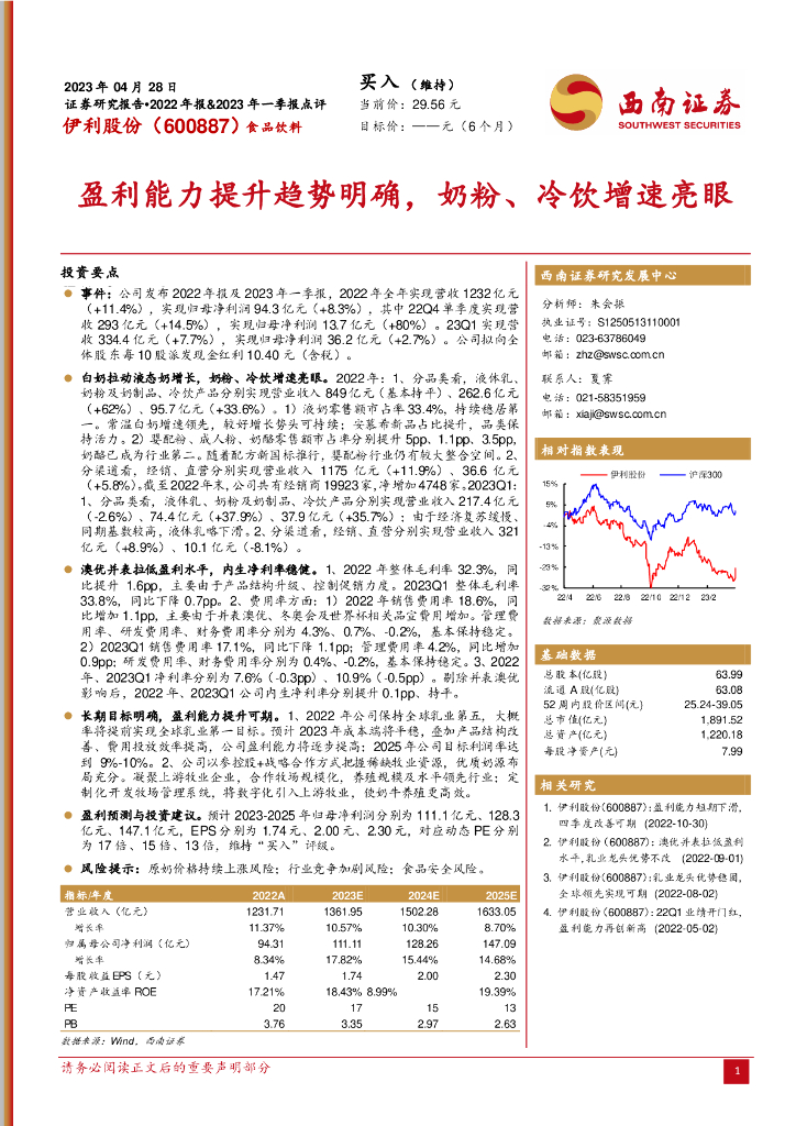 西南证券:伊利股份(600887)-盈利能力提升趋势明确,奶粉、冷饮增速亮眼.pdf