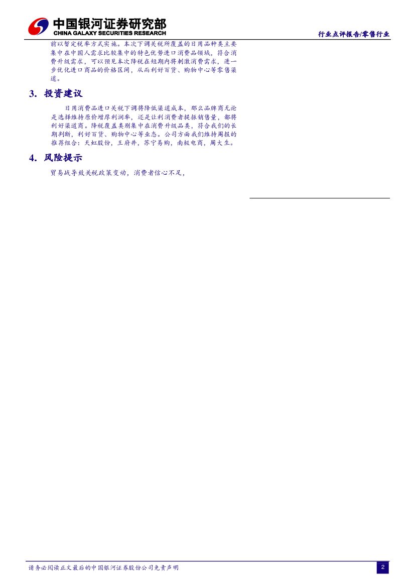 中国银河:零售行业点评报告:日用消费品下调进口关税,短期提振消费需求,利好百货等终端渠道.pdf