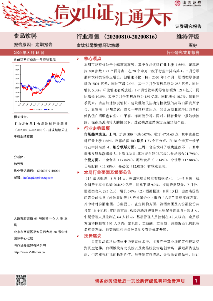 山西证券:食品饮料行业周报:食饮社零数据环比放缓.pdf