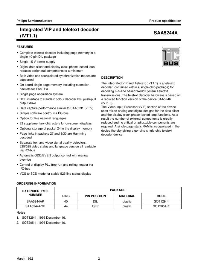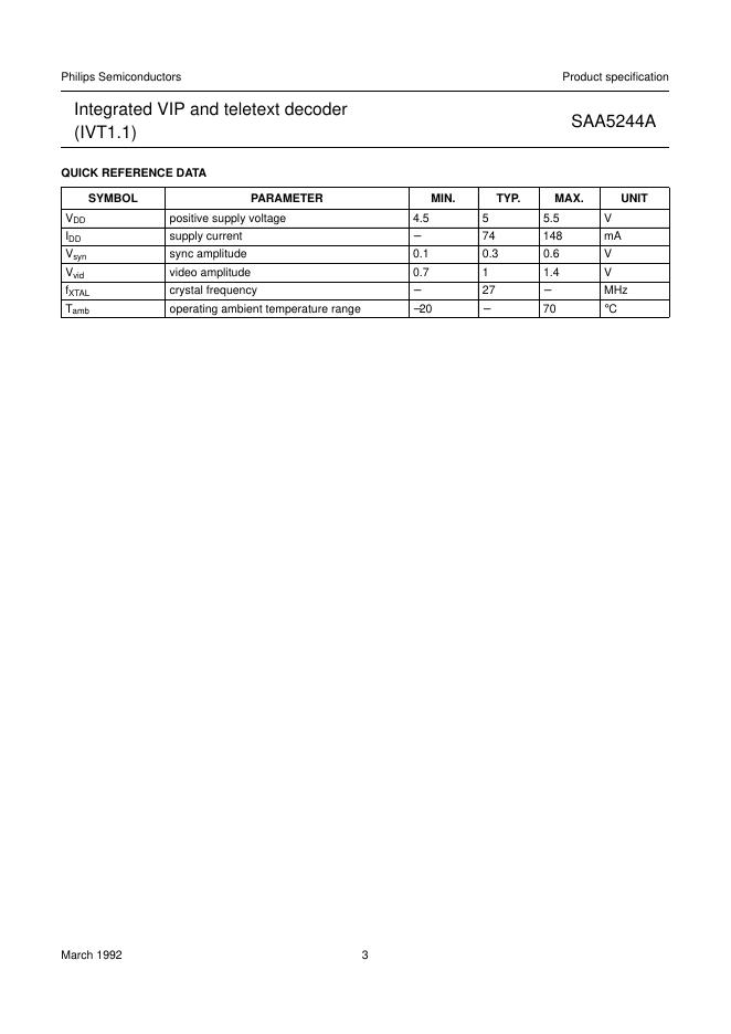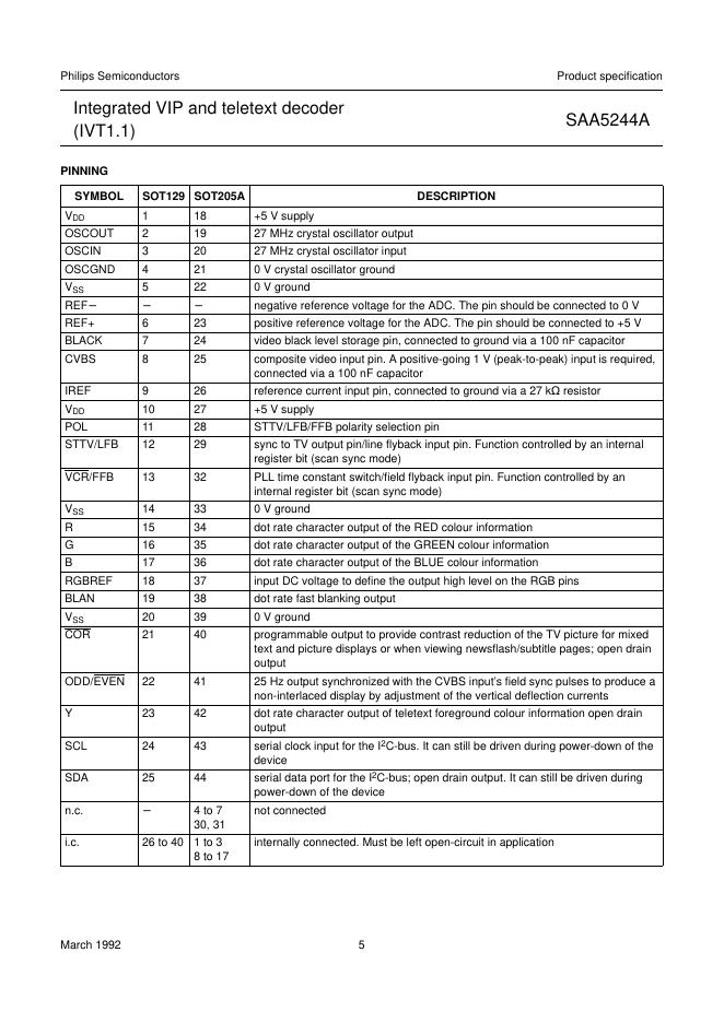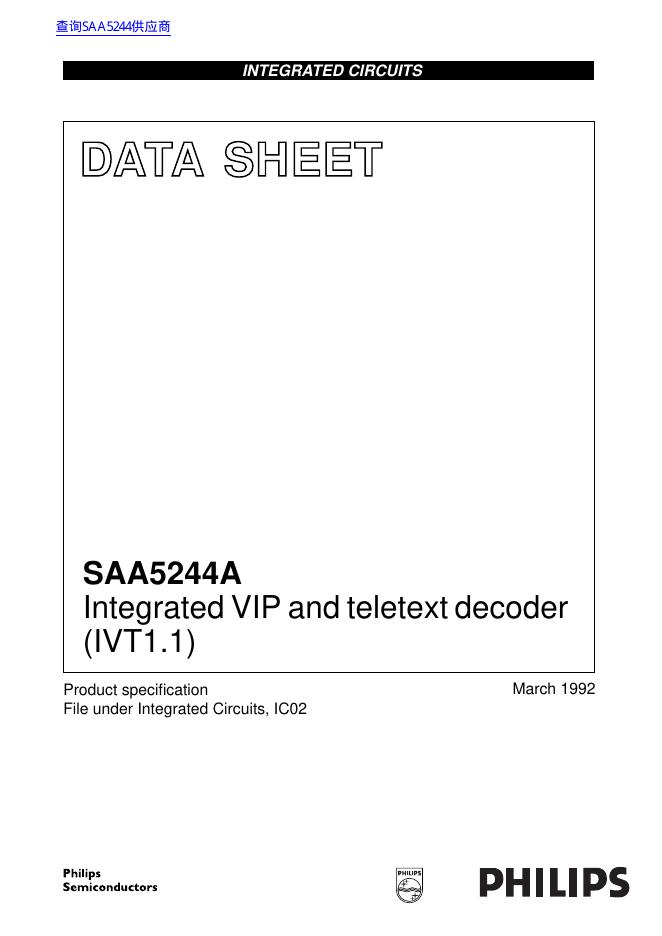 PHILIPS SAA5244A Integrated VIP and teletext decoder (IVT1.1) 数据手册.pdf