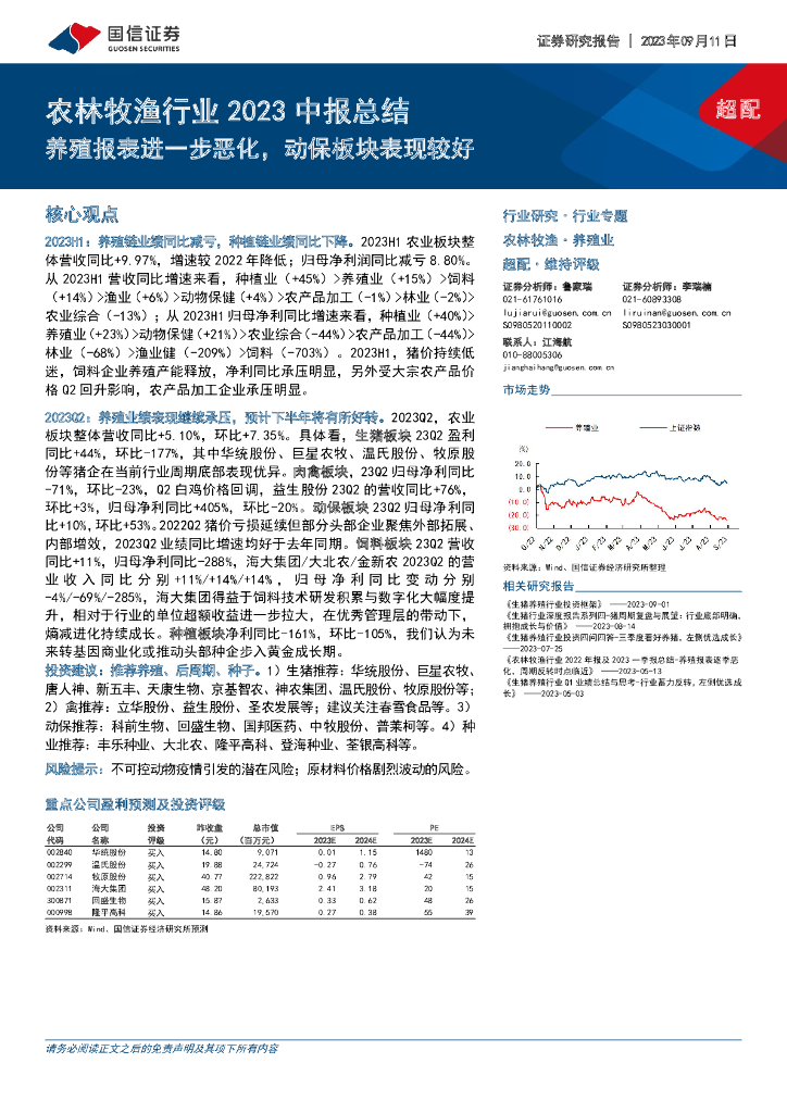 国信证券:农林牧渔行业2023中报总结:养殖报表进一步恶化,动保板块表现较好.pdf