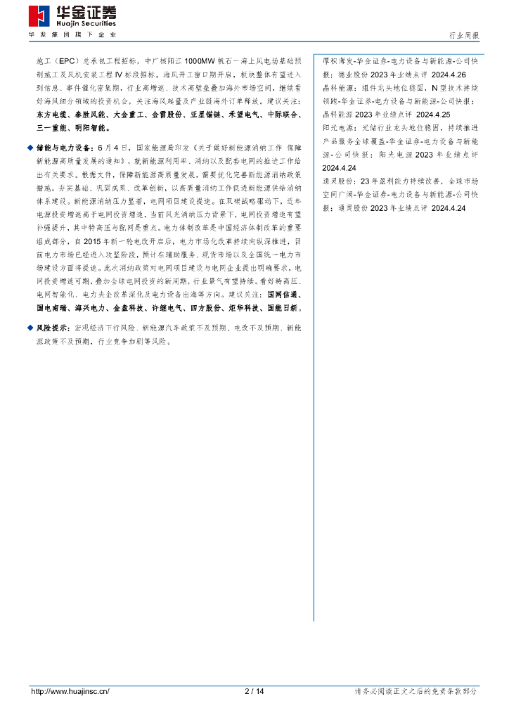 华金证券:电力设备及新能源行业周报:电力设备及新能源能源局发文力促新能源消纳,24年SENC光伏展国内外参展商超3500家【第23期】.pdf