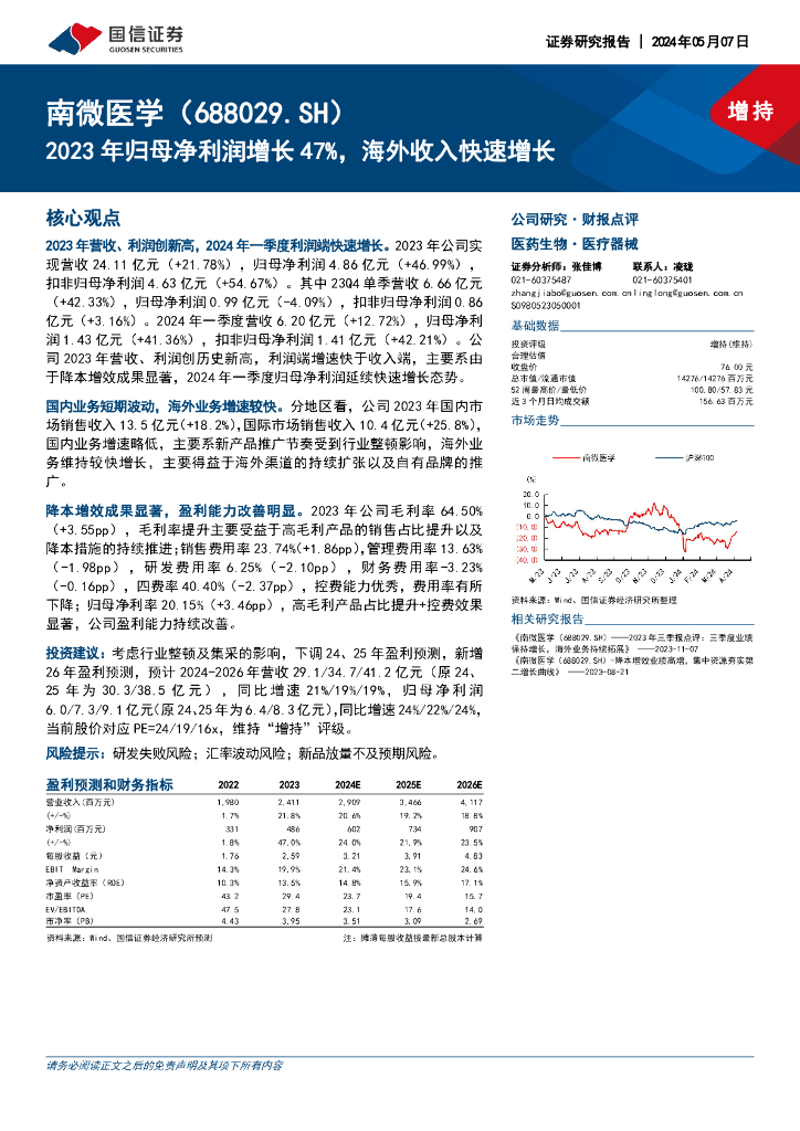 国信证券:南微医学(688029)-2023年归母净利润增长47%,海外收入快速增长.pdf