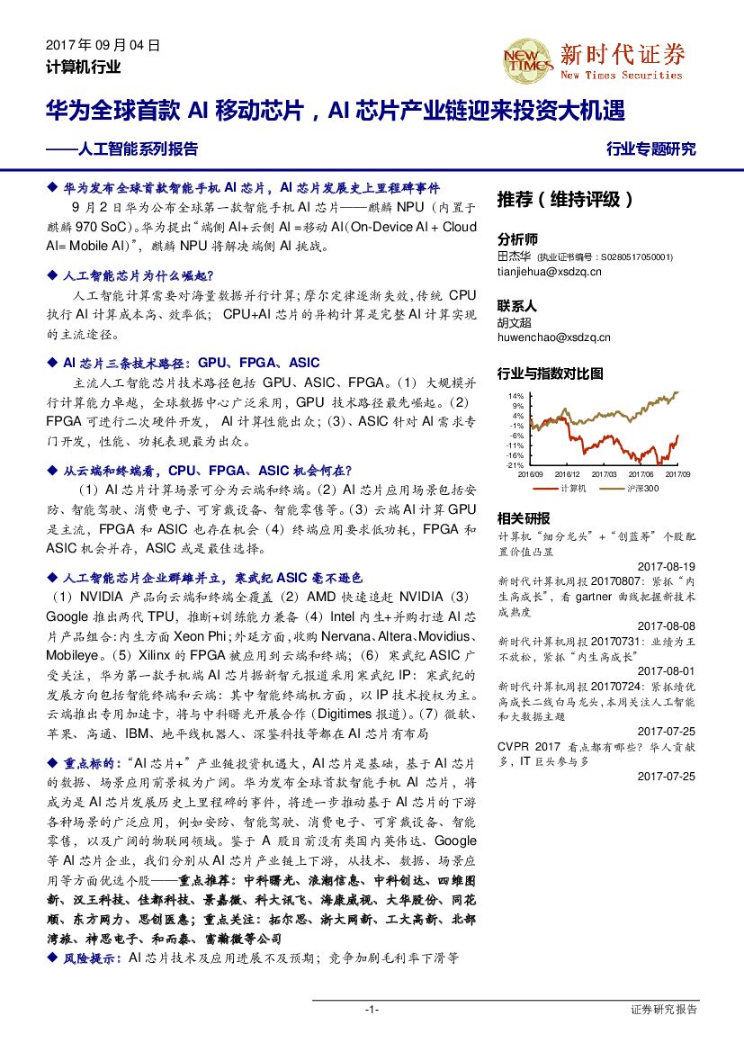新时代证券:人工智能系列报告:华为全球首款AI移动芯片,AI芯片产业链迎来投资大机遇.pdf