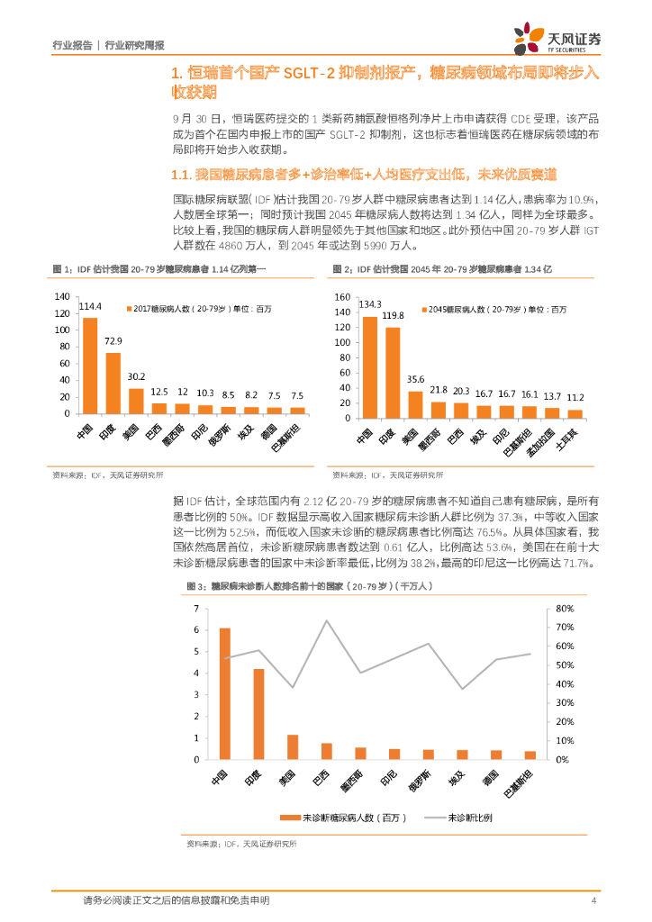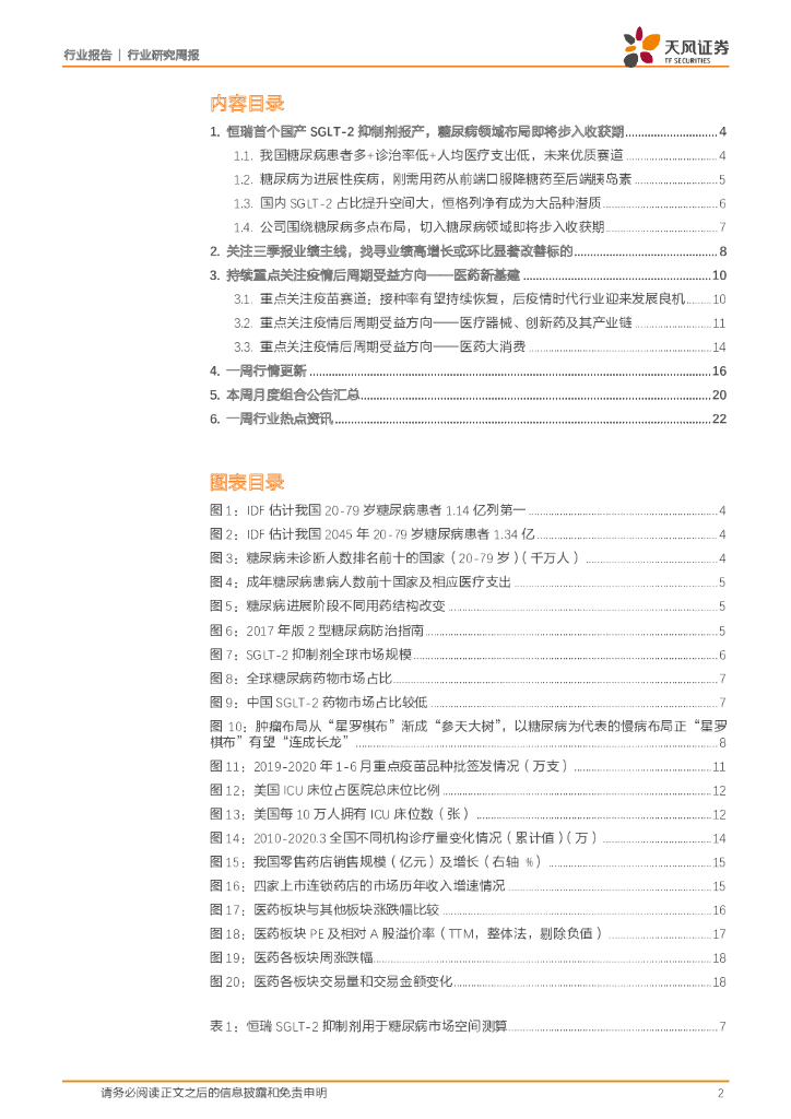 天风证券:医药生物行业研究周报:从首个国产SGLT-2报产看恒瑞糖尿病布局,关注医药三季报业绩主线.pdf