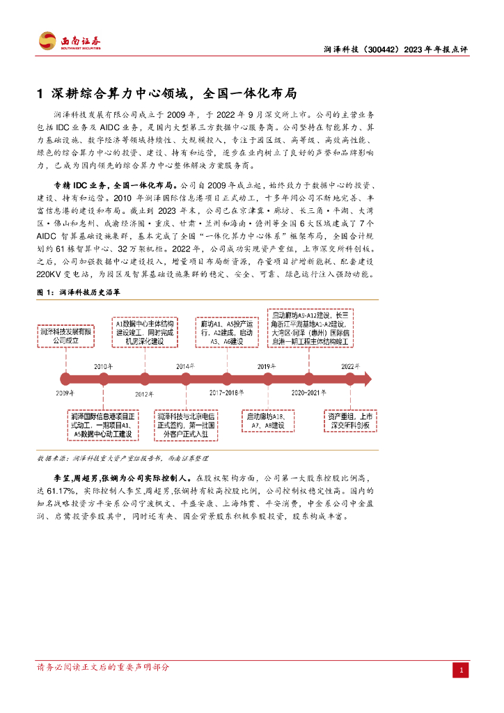 西南证券:润泽科技(300442)-2023年年报点评:业绩稳健增长,AIDC前景广阔.pdf