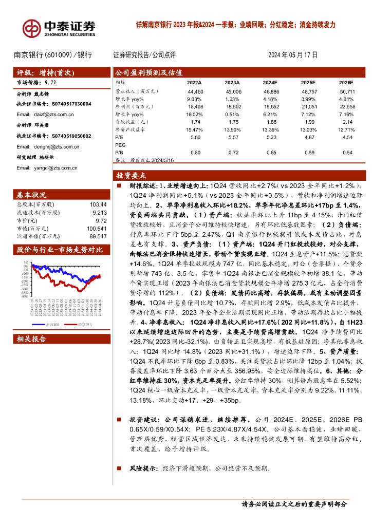 中泰证券:详解南京银行2023年报&2024一季报:业绩回暖;分红稳定;消金持续发力.pdf