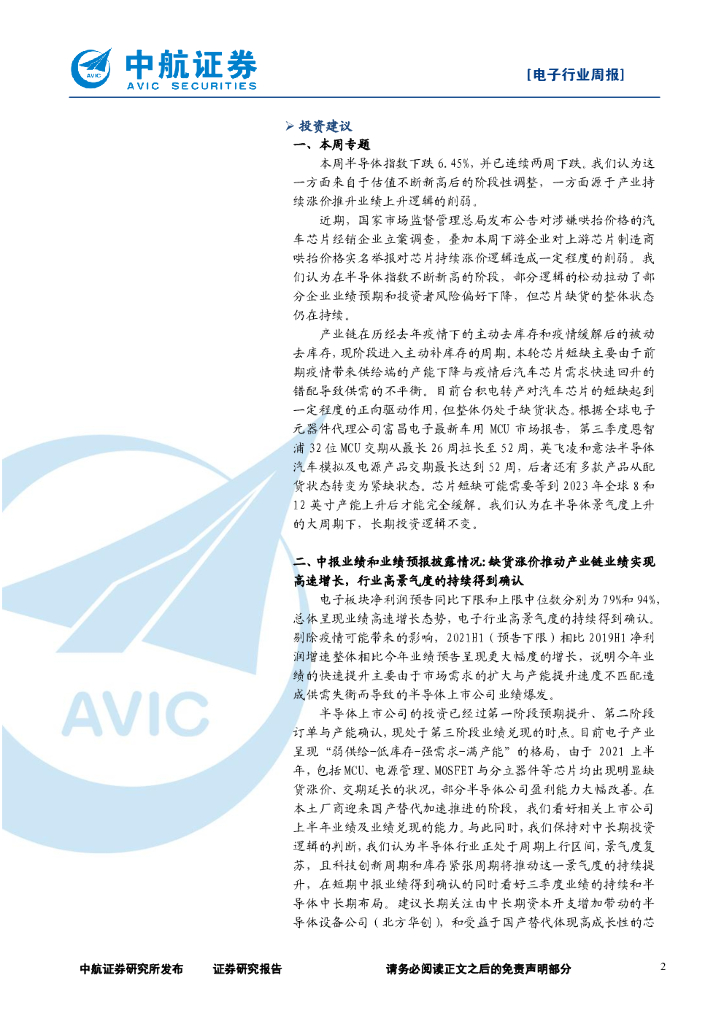 中航证券:电子行业周报:半导体指数连续两周下跌,长期投资逻辑不变.pdf
