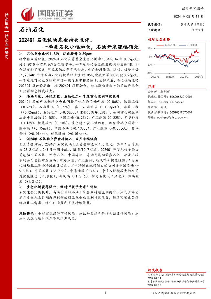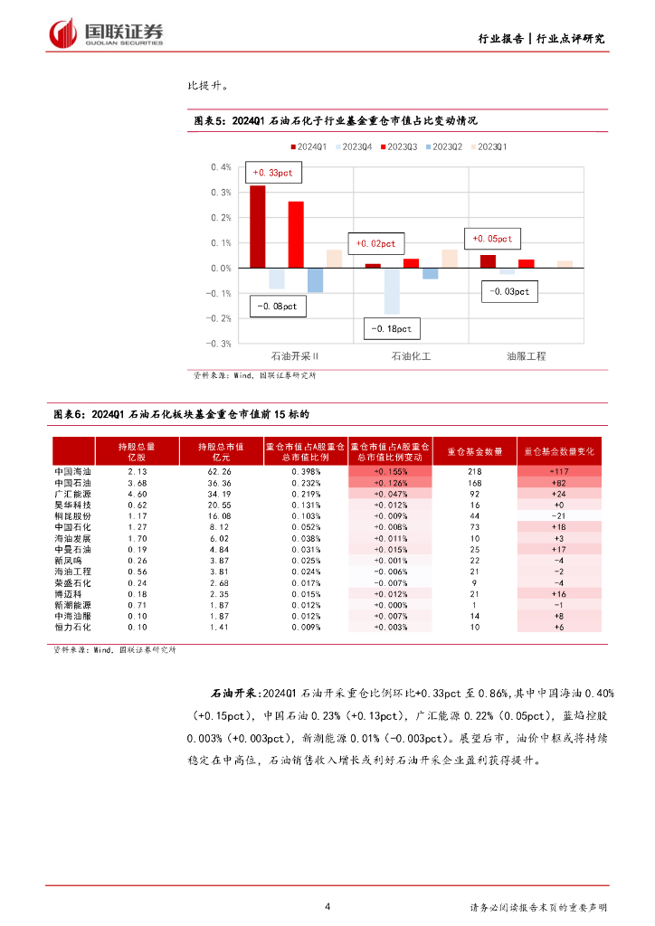 国联证券:2024Q1石化板块基金持仓点评:一季度石化小幅加仓,石油开采涨幅领先.pdf