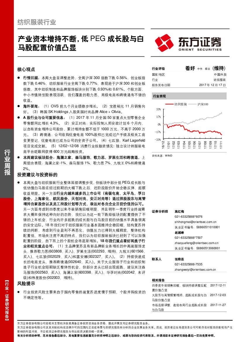 东方证券:纺织服装行业周报:产业资本增持不断,低PEG成长股与白马股配置价值凸显.pdf