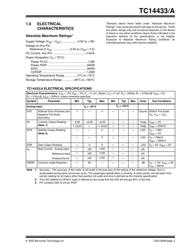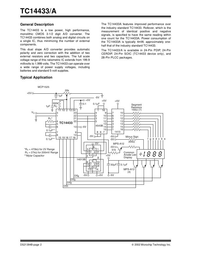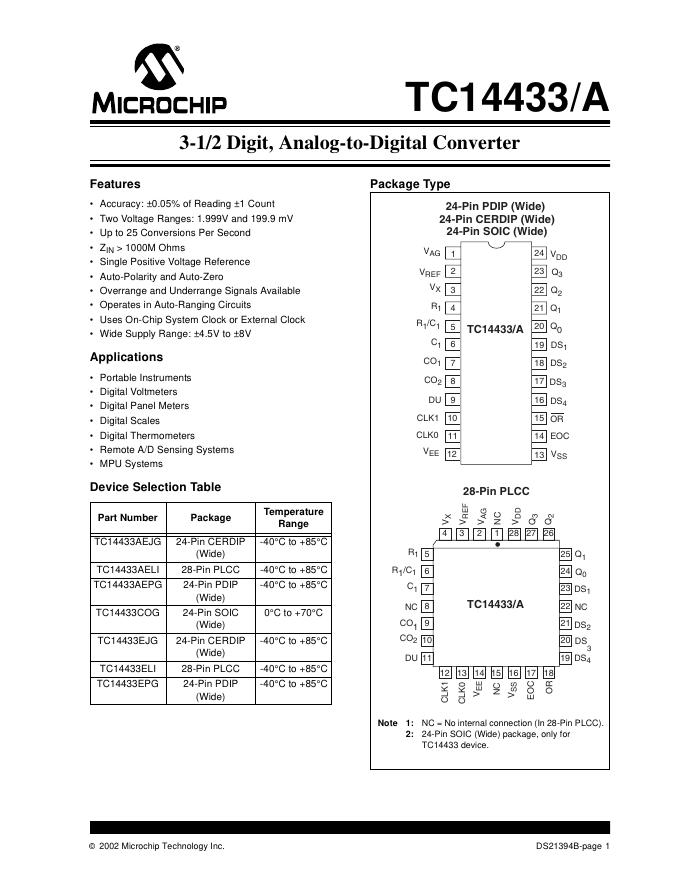 MICROCHIP -TC14433/A 3-1/2 Digit, Analog-to-Digital Converter 数据手册.pdf