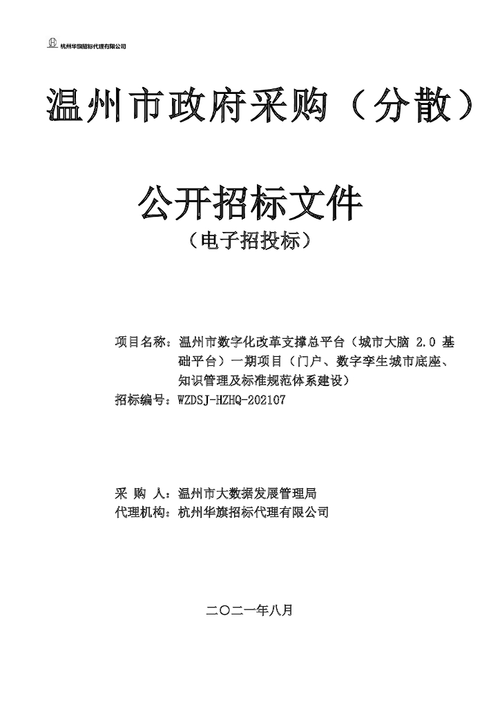 温州市数字化改革支撑总平台(城市大脑2.0基础平台)一期项目(门户、数字孪生城市底座、知识管理及标准规范体系建设).pdf