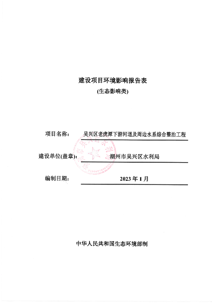 吴兴区老虎潭下游河道及周边水系综合整治工程建设项目环境影响报告表(生态影响类).pdf