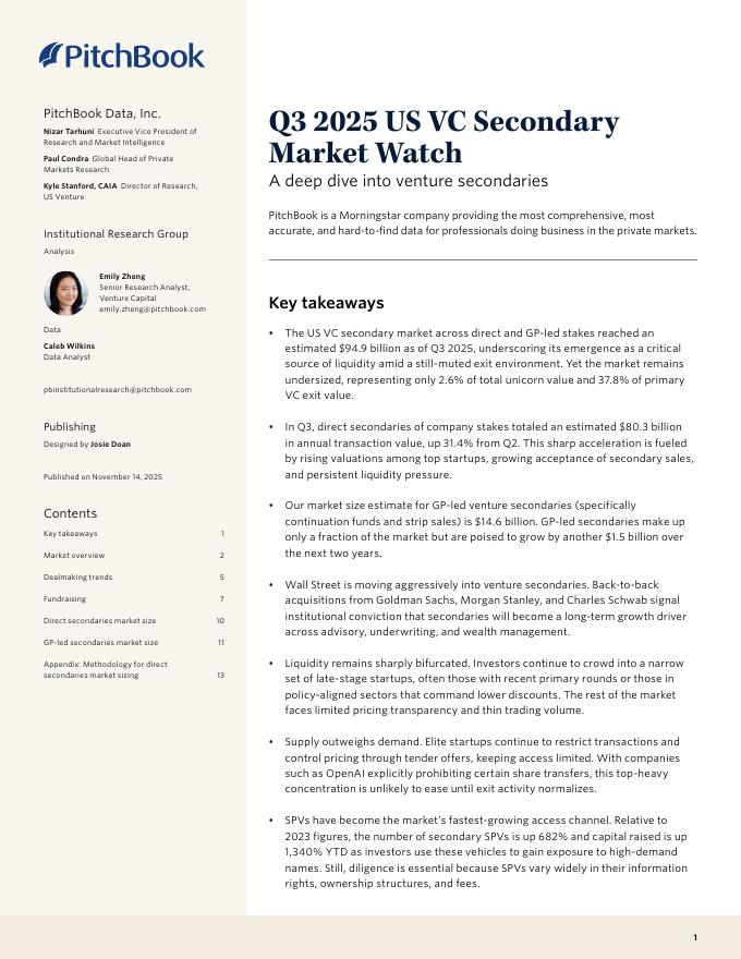 PitchBook:2025年第三季度美国风险投资二级市场观察报告(英文版).pdf