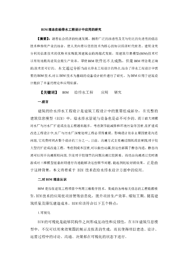 BIM理念在给排水工程设计中应用的研究.doc