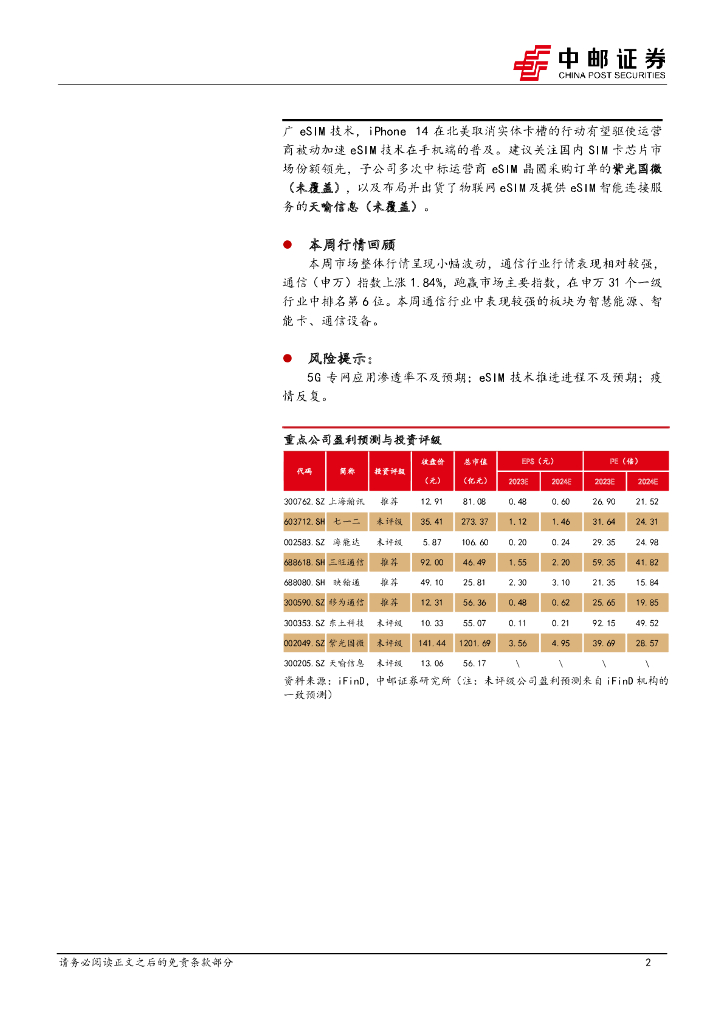 中邮证券:通信行业周报:中国商飞获首张5G专网频率许可,北美运营商加快eSIM技术推广.pdf