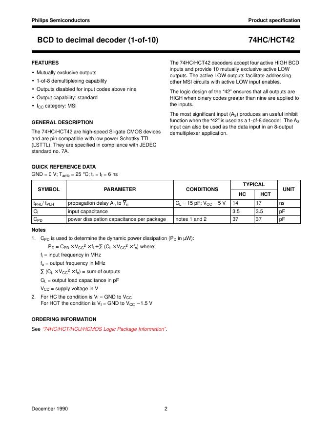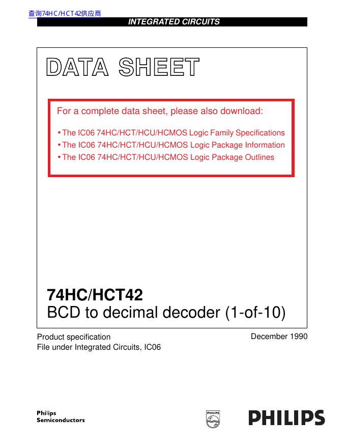 PHILIPS 74HC/HCT42 BCD to decimal decoder (1-of-10) 数据手册.pdf