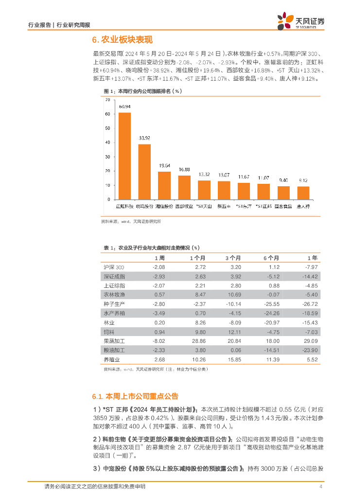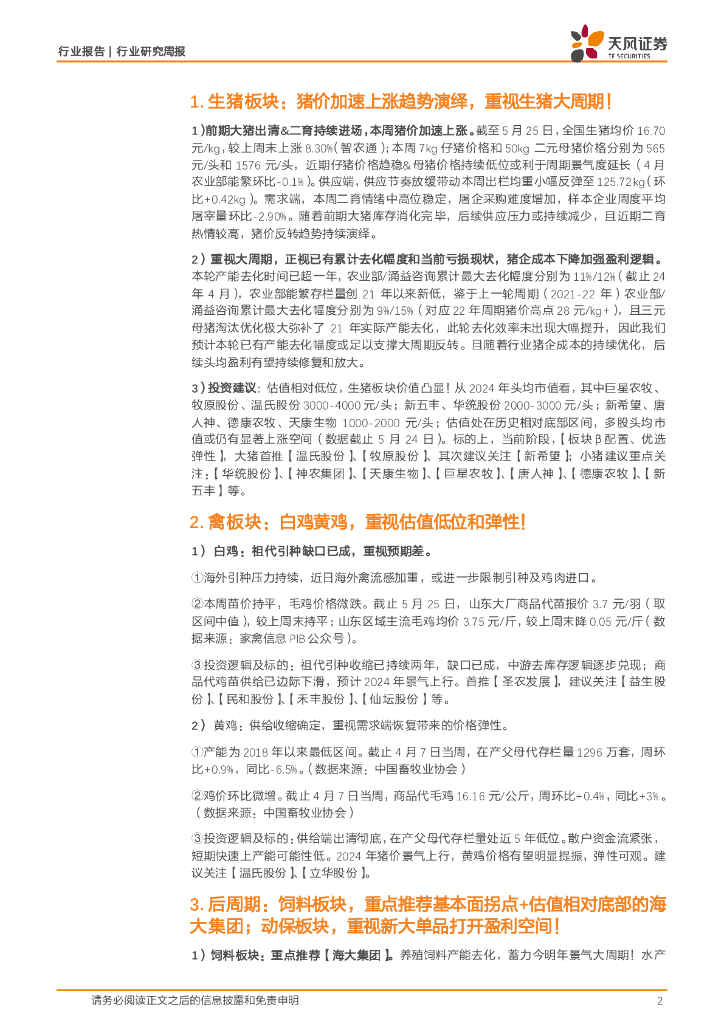 天风证券:农林牧渔行业2024年第20周周报:猪价反转趋势持续演绎,坚定推荐猪鸡景气大周期机会.pdf