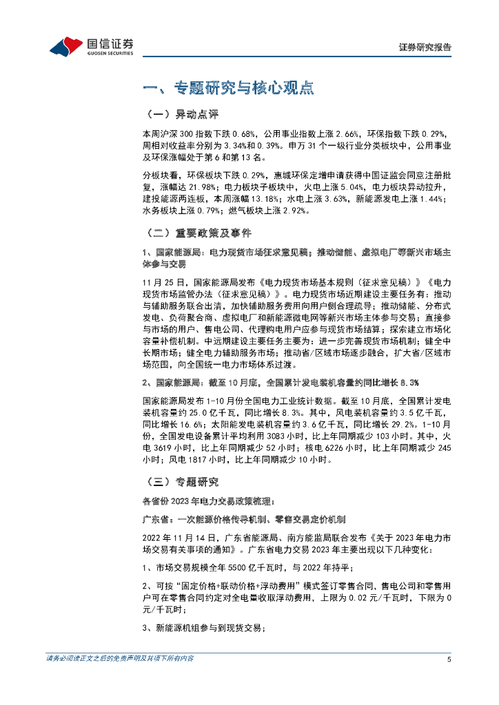 国信证券:环保与公用事业202211第4期:全国电力现货市场建设推进,各地2023年电力交易规则梳理.pdf