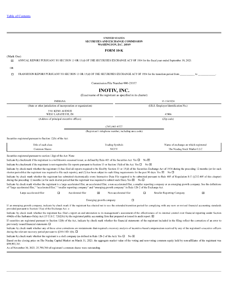 Inotiv, Inc.(NOTV)2023财年年度报告(英文版).pdf